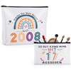 - Humorous gifts for girls 17 years: The pack of 2 waterproof cosmetic bags are the perfect gift for girls celebrating their 17th birthday! Elegantly designed to declutter personal care items, with a humorous inscription with her birth year "2008", this fun gift for 17 year old girls, friends, sisters and best friends will laugh!