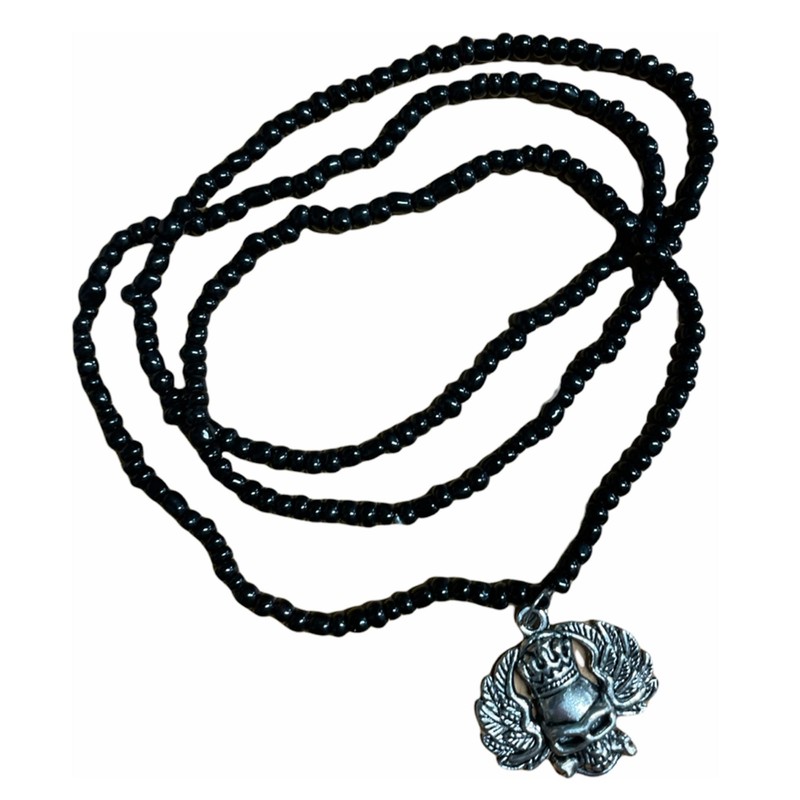 - very long 16.5 inches - black seed beads - great as a talisman or amule