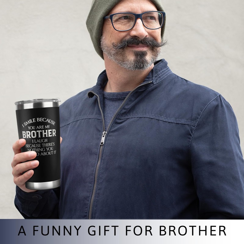 - GIFTS FOR BROTHER FROM SISTER, BROTHER: This humorous tumbler celebrates the bond you share with your Brother. While it keeps his beverages at the ideal temperature, it also serves as a playful wink to your private jokes and shared laughter. Suitable for brother gifts from sister, gift for brother, big brother gifts, funny brother gifts, funny gifts for brother, brother gifts from brother, gifts for older brother, brother gifts from sister funny, ...