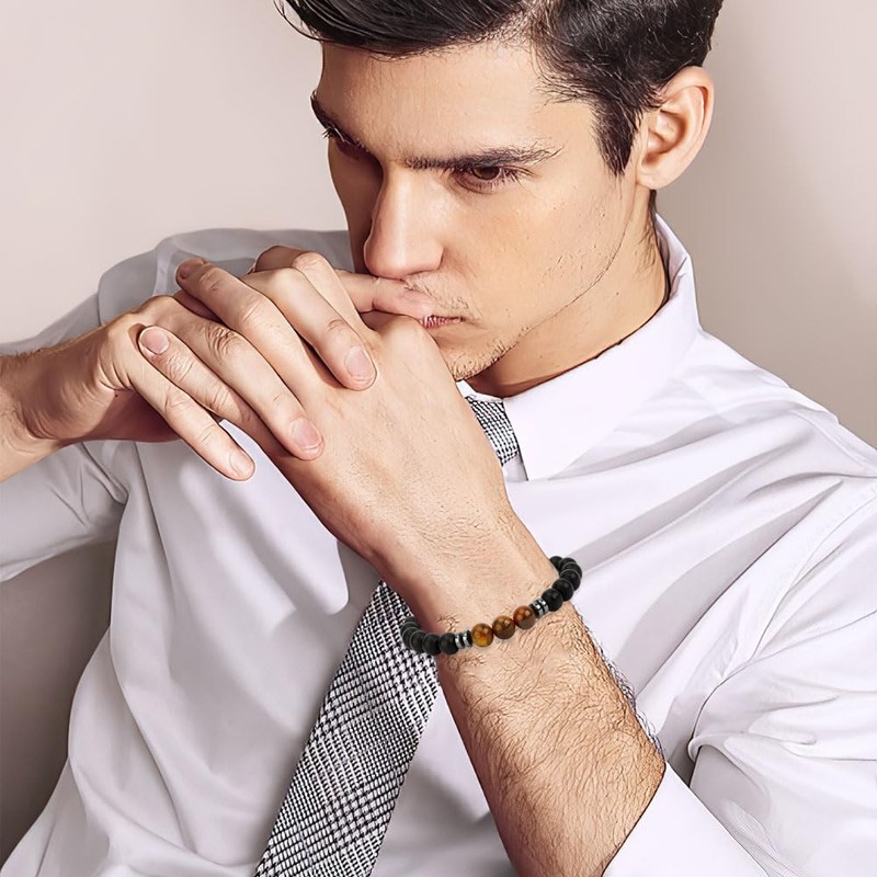- High quality: the bracelet beads are made of natural tiger's eye stone, the surface is polished and not easy to wear. The jet black tone is more delicate and fashionable.