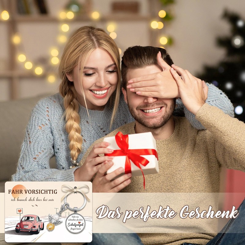 - Unique design: guardian angel keyring with the engraving "Fahre nie schneller" than your guardian angel can fly to remind your family or friends to safely enter and exit