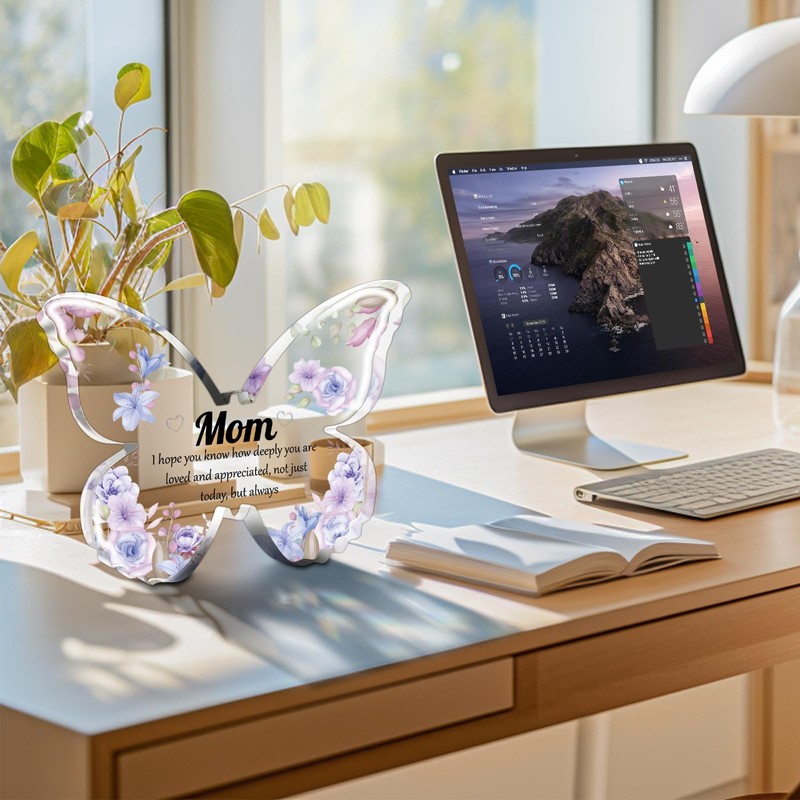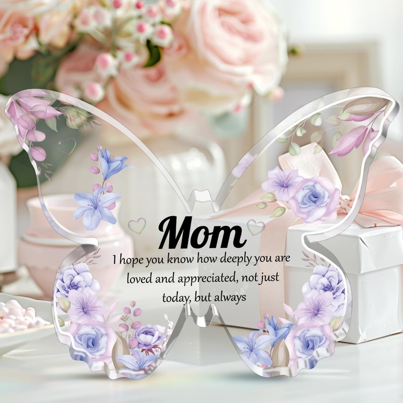 Gifts for Mom-5x3.8 Inch Butterfly-Shaped Acrylic Keepsake, Express Your Love and Appreciation with this Elegant and Sentimental Keepsake, Unique Present for Mother's Day, Birthdays, Christmas