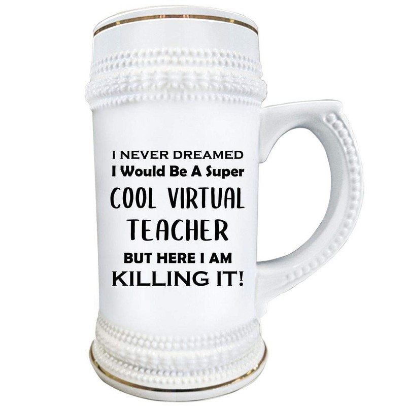 Gifts for Virtual Teacher Appreciation 2020 Quarantine Pandemic Funny - Beer Stein Mug 22oz Ceramic Drinkware - Professor Teaching Assistant Distance Learning School Year Gag Idea - Dreamed SuperCool