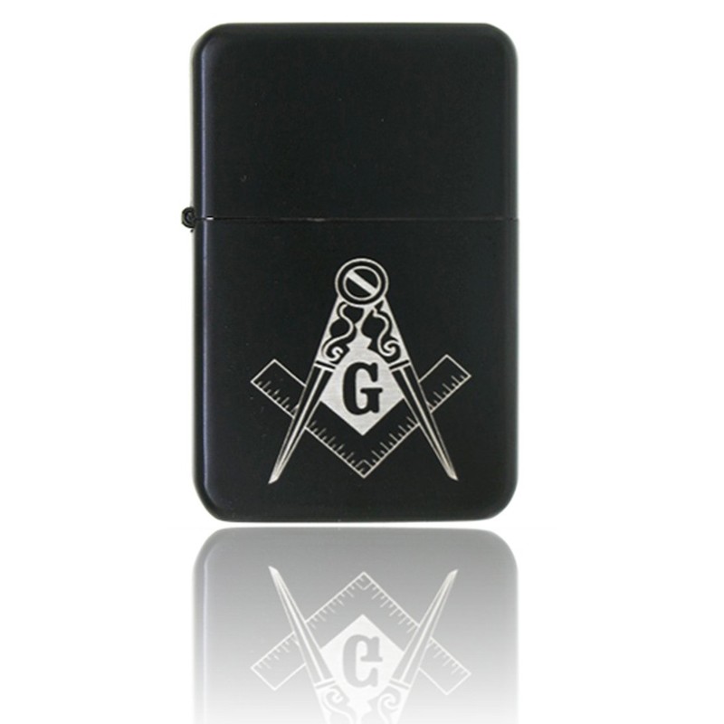 • Masonic Freemasonry Matt Black Finish Wind Proof Oil Lighter