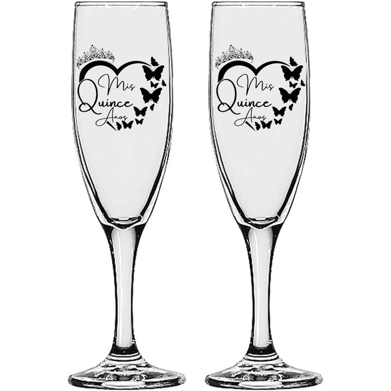 - GIFTS INFINITY UV Printed Mis Quince Anos Champagne Flutes Set of 2 Toasting Glasses