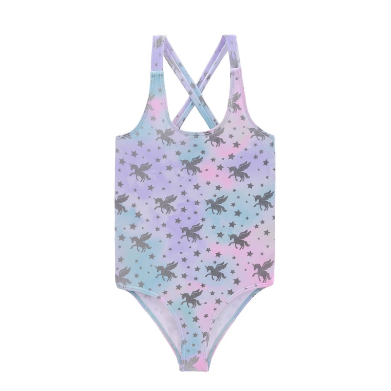 - Bonito diseño: traje de baño de una pieza para niñas con patrón colorido y lindo, unicornio, escala de peces, personaje de dibujos animados. Viste en el traje de baño, tu niña se verá adorable
