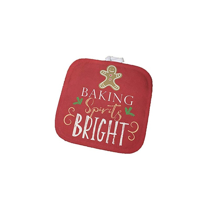 Add a festive feel to your kitchen while you're baking Christmas cookies with our exclusive Baking Spirits Bright Christmas Pot Holder. This item is non-personalized, so it's great to include in clever gifts, especially if they're of the baked variety! This is the perfect Christmas Decor item for your kitchen!