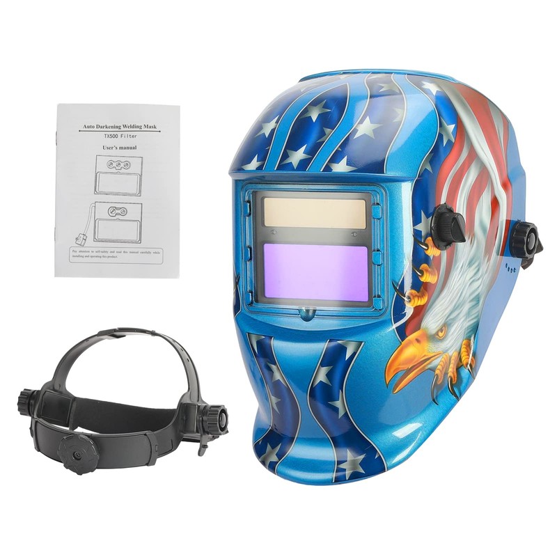 • 👓【Adjustable & Lightweight】Our welding helmet auto darkening is ergonomically designed to provide ample internal space and easy to operate, with knobs on both sides to adjust the angle and knobs on the back to adjust the tightness of the headband to fit different people's heads. Weighing only 1 lbs, our welder helmet is comfortable over extended work periods.Suitable for industrial use that can handle multiple processes such as grinding, DC TIG, AC TIG, MIG/MAG, MMA/Stick welding.