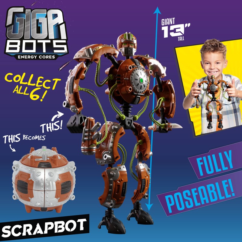 - ABOUT SCRAPBOT - SCRAPBOT is known as “Chief Builder / Mechanic”. Wielding a disrupter blaster and energy saw. SCRAPBOT is calm, a jokester, and always looking to upgrade the GIGABOTS! GIGABOTS make the perfect gift for children aged 5 and over who love action figure toys and construction toys. Kids can have endless fun constructing and deconstructing their GIGABOTS figures and will love creating play scenarios with their friends.
