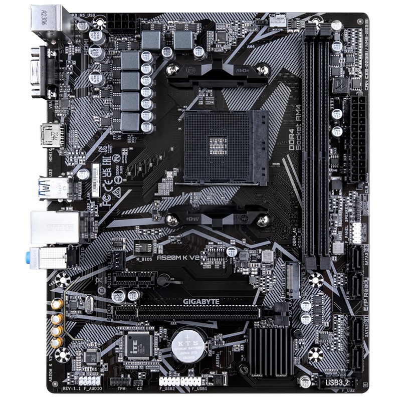 Gigabyte A520M K V2 Motherboard - Supports AMD Ryzen 5000 Series AM4 CPUs, up to 5100MHz DDR4 (OC), PCIe Gen3 x4 M.2, GbE LAN, USB 3.2 Gen 1