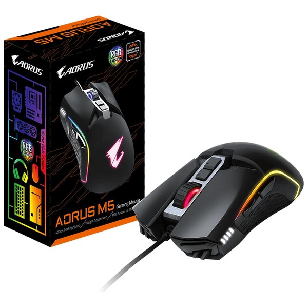 GIGABYTE AORUS M5 Gaming Mouse (USB Wired Optical Sensor, Omron Switch, 7 Keys, Right Handed)