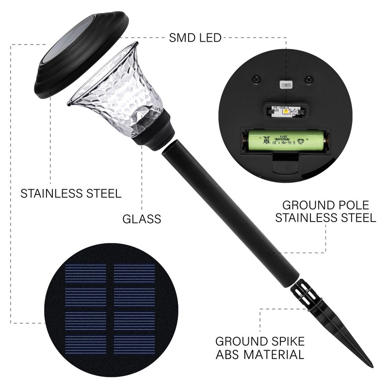 GIGALUMI 8 Pack Solar Pathway Lights, Solar Garden Lights Outdoor Warm White, Waterproof Led Path Lights for Yard, Patio, Landscape, Walkway (Black)