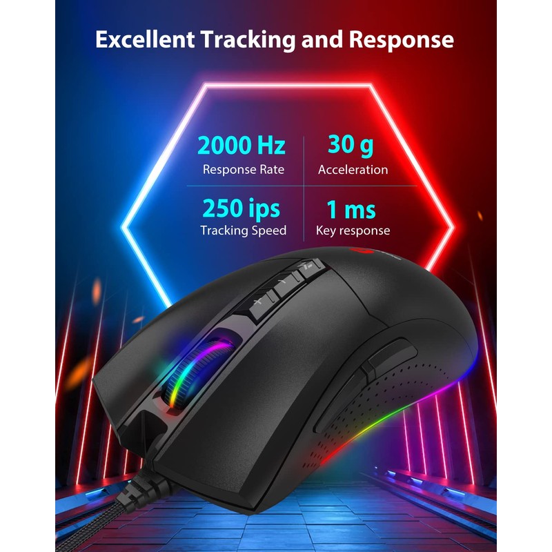 - 【Finest Specifications】 7 gaming modes, 512KB onboard memory, 2000Hz polling rate, 35g acceleration, 250 ips tracking speed, 8000 fps, and 1 ms key response.