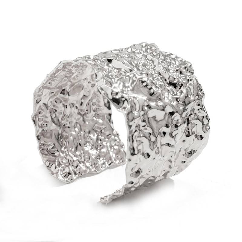 GIGB PBDK Chunky Gold Cuff Bracelet for Women Wide Thick Bangle Bracelets Exaggerated Irregular Textured Open Bangle Trendy Punk Hip Hop Jewelry Accessories (Silver)