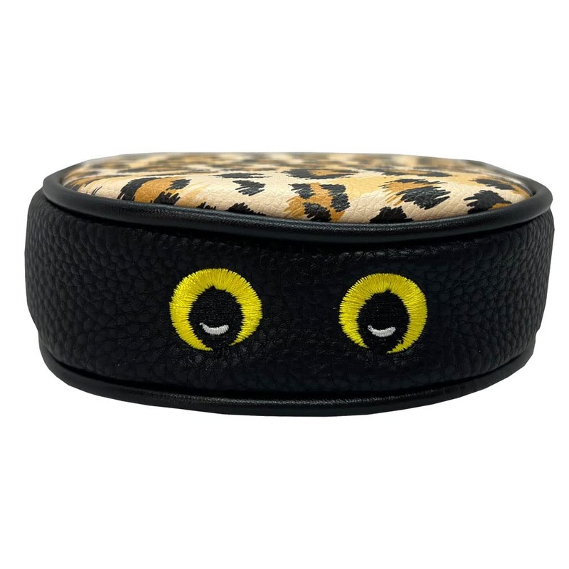 UPDATED DESIGN & EASY TO USE MAGNETIC CLOSURE! Add some fun to your golf bag with this Wild ABout Golf mallet putter cover. It fits standard mallet putters. It has a comfortable, silk, velvet Neri lining on the inside, and a PU Synthetic leather shell, that is printed & embroidered. This front side has a leopard print design.The back side has a leopard print paw print on the magnetic closure, and says, "Wild About Golf." The side is embroidered with cat eyes. The dimensions are approximately 4.75" x 5.50" x 1.25".