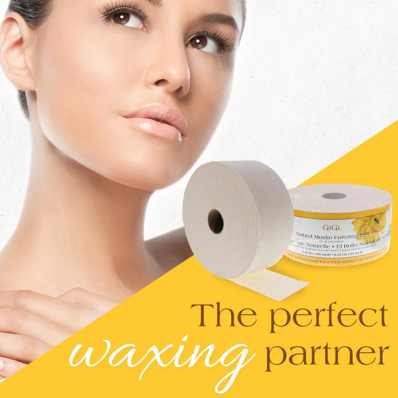 - NEVER RUN OUT OF SUPPLIES: With great price & quality, the GiGi Natural Waxing Muslin Roll is easier to cut your preferred sizes for waxing the brows, face up to the delicate areas and will not waste any. A good choice for waxing at home! It comes in 3.25-inch x 100 yards for the price so you don't have to think about buying too often. Stick with the trusted, proven effectiveness of GiGi Natural Waxing Muslin Roll!