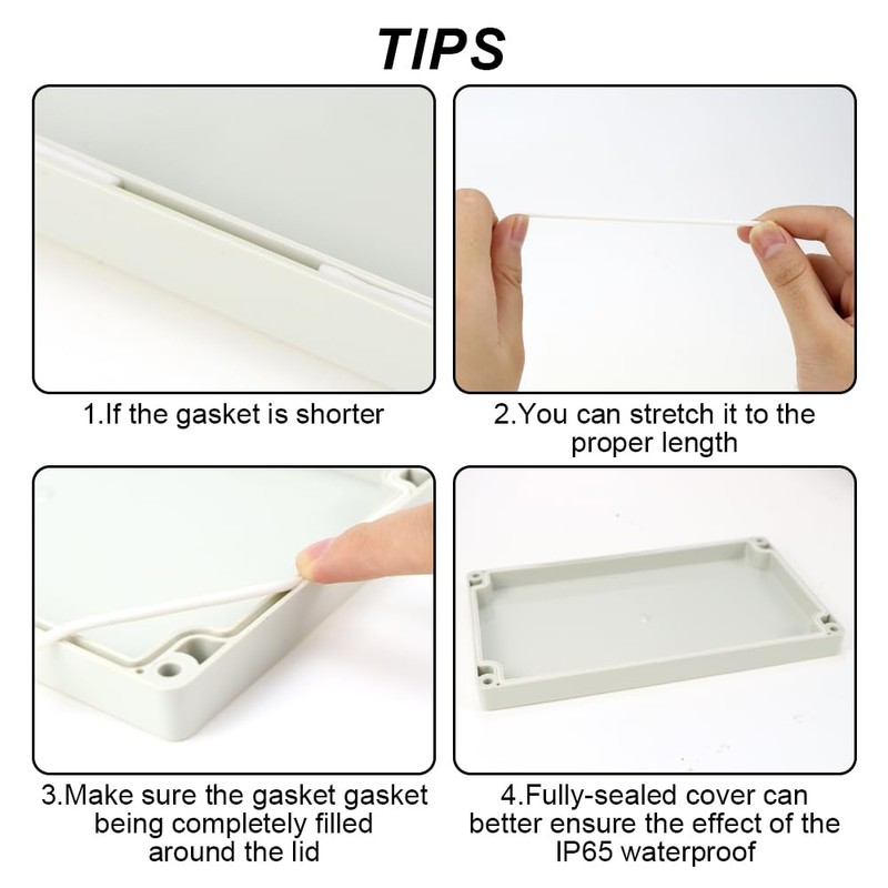 - EASY INSTALLATION Our outdoor junction boxes come as a convenient set of two cans. They are easy to assemble and come with 2 white waterproof strips (each 58 cm long) and 8 silver screws (2 cm long each).