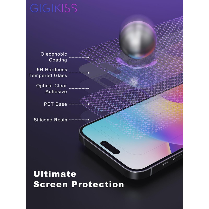 GIGIKISS 16 Pro Max Screen Privacy Purple Screen Protector