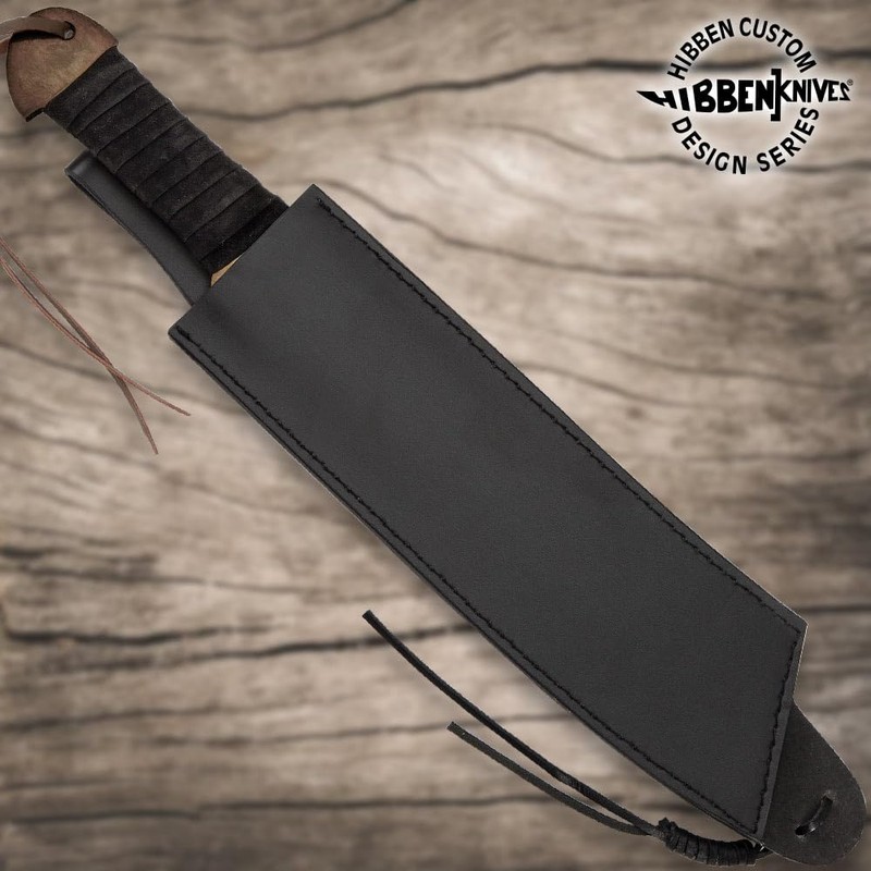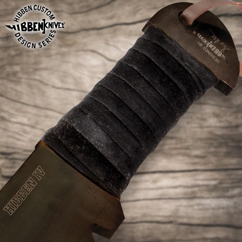 Gil Hibben IV Machete Knife with Leather Sheath | Heat Forged 1090 Carbon Steel | Weathered Blade Finish | Black Cord-Wrapped Handle | Rugged Machete for Practical Use | 18 1/4" Overall
