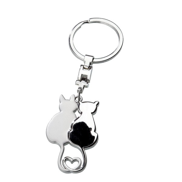 - 1 x key ring cat love couple silver matt/polished, with eternity symbol