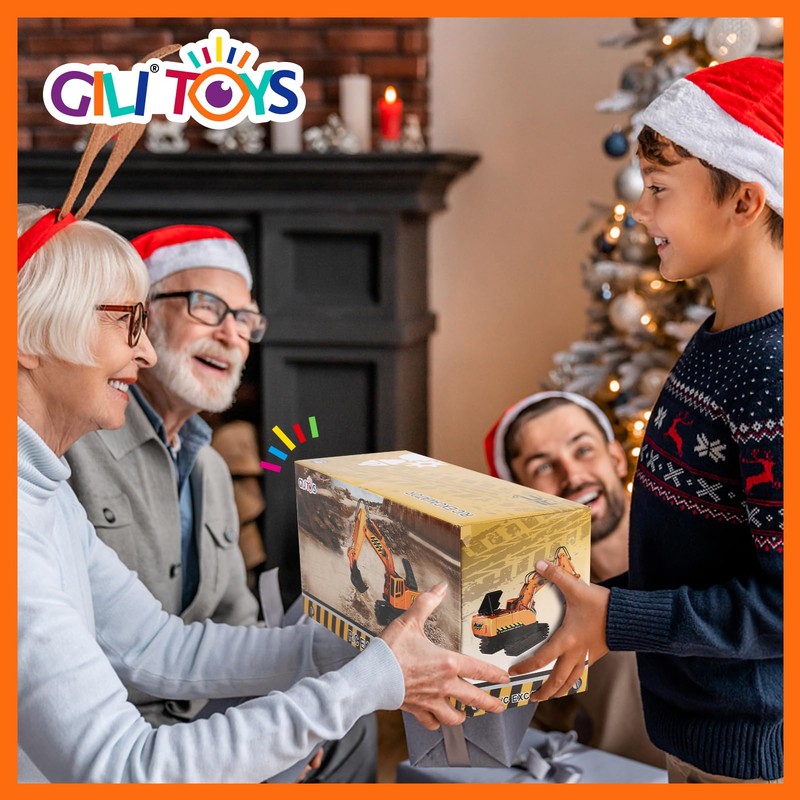 Gili RC Excavator Toy, Remote Control Hydraulic Toy Car for 4, 5, 6, 7, 8 Year Old Boys Girls, Construction Tractor Vehicle, Rechargable Engineering Digger Truck, Best Birthday Gifts for Kids Age 3yr