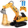 - ⛽Full functional RC Excavator for Kids: With 350° rotating cab, working hydraulic, flexible articulated arm and digging shovel, this 1/26 heavy duty digger is more than an exquisite model toy, it operates like a real construction vehicle. Powerful and sturdy rubber belt track make it possible to go freely on various terrains, such as yard, grassland, gravel road, and some bumpy grounds etc. size: 12.5*4.75*6.75 inches