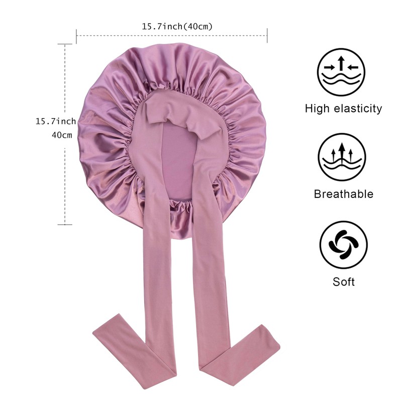 GiLi Satin Bonnet Silk Bonnet Hair Bonnet for Sleeping Large Bonnets with Tie Band Hair Wrap with Adjustable Straps Hair Cap Night Sleep Caps for Women Curly Braid Hair Mauve