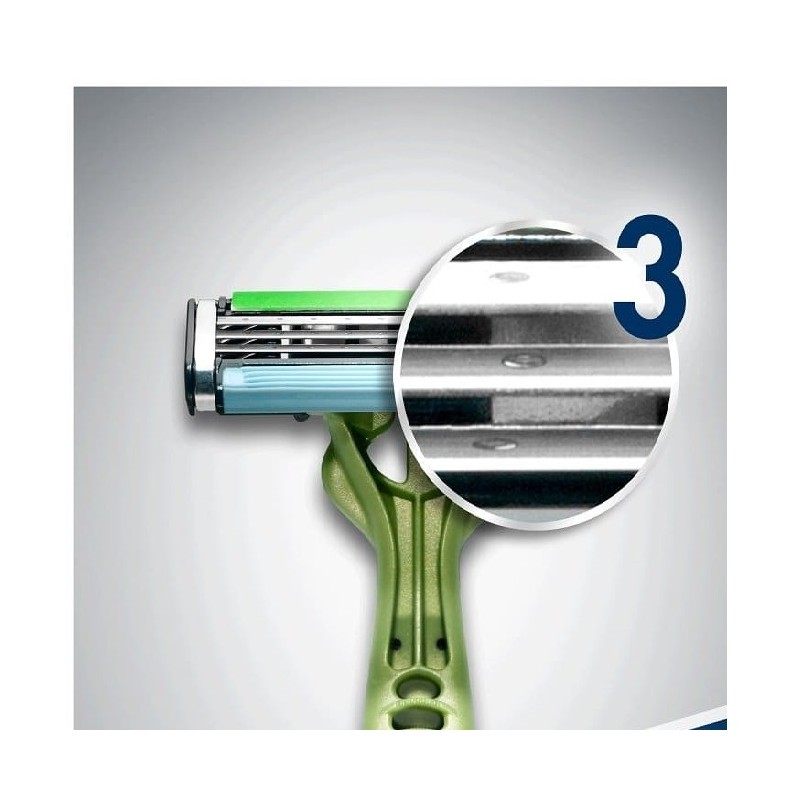 Gillette Blue3 Sensitive disposable razors have 3 chrome-plated blades that “read” the skin and the moving head that adapts to the contours of your face. The improved lubricating strip with water-activated Comfortgel technology gives you maximum comfort. With the non-slip rubber grip you have control and flexibility.