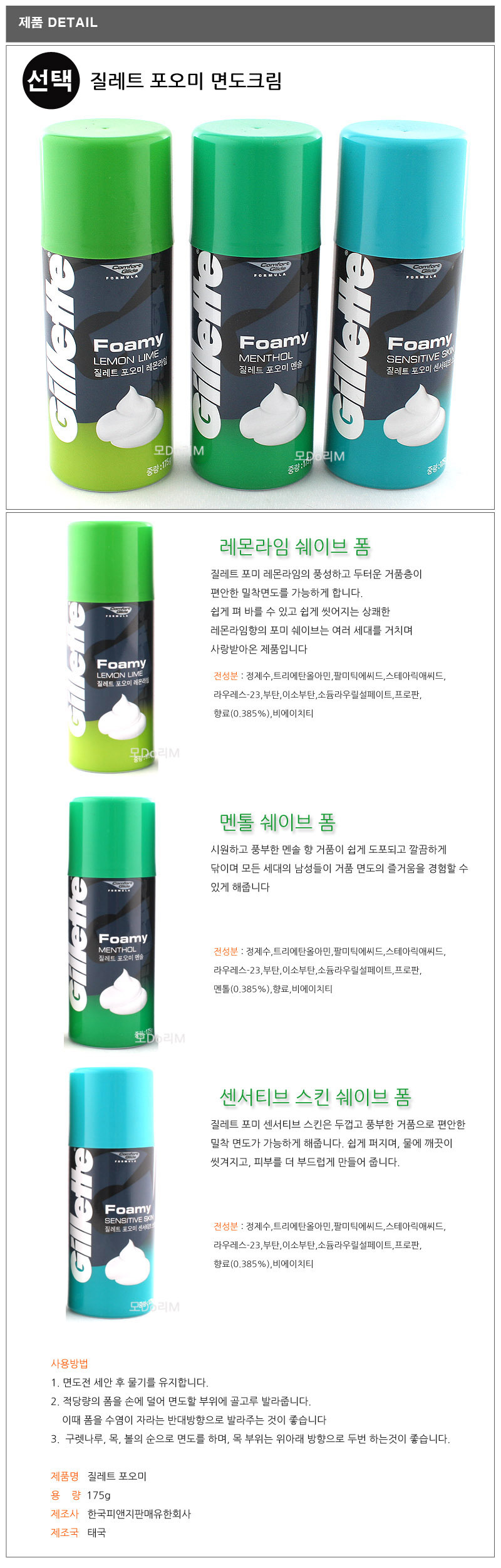질레트포오미면도크림 - 멘톨쉐이브폼