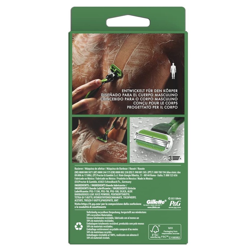 Gillette Gillette Body Rasierer Herren, Körperrasierer + 1 Rasierklinge mit 3-fach Klinge, Nassrasierer Herren, Grün