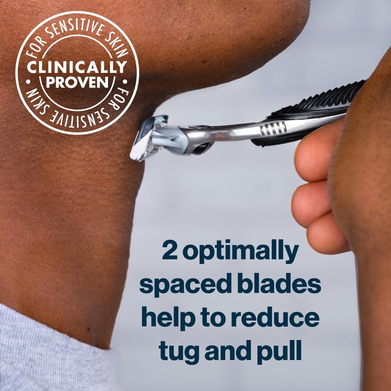 - 2 BLADES plus SKINGUARD designed for men with skin irritation, razor bumps, and razor burn