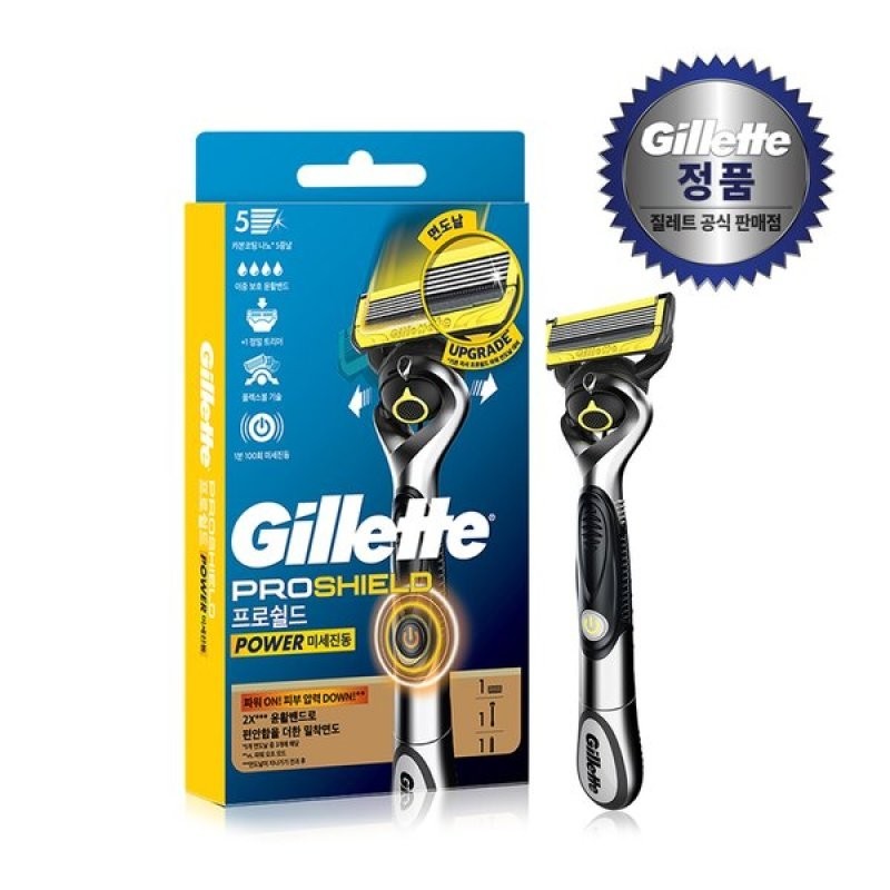 Gillette ProShield Yellow Power Razor Handle (1 Pack) + Blade (1 Pack) / 질레트 ...