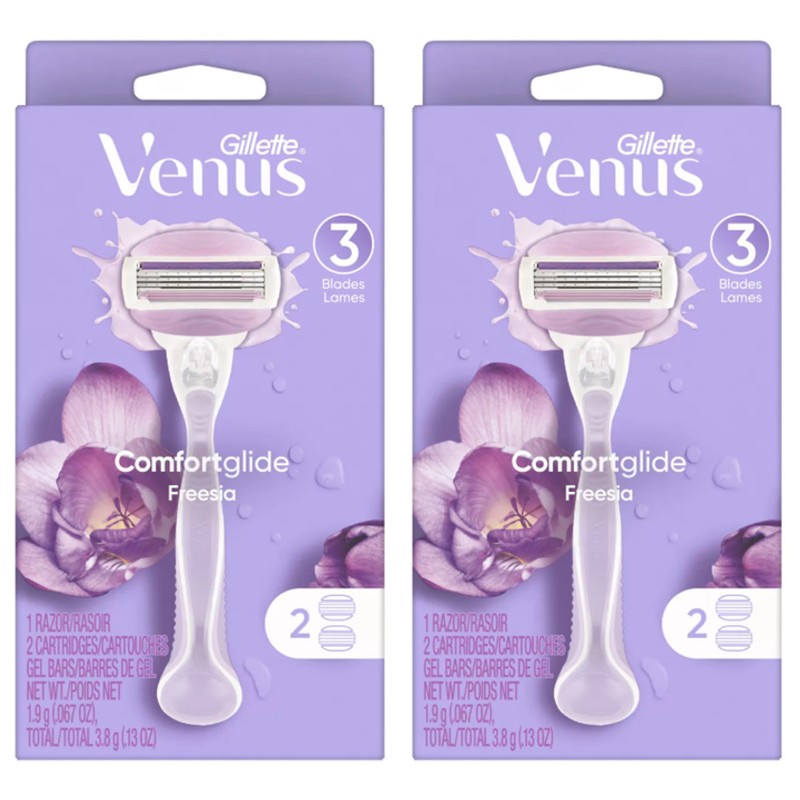 Gillette Venus ComfortGlide Freesia Women 3-Blade 1 Razor 2 Cartridge-Lot of 2