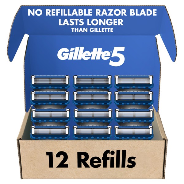 Gillette5 Mens Razor Blade Refills, 12 Count, Lubrastrip for a More Comfortable Shave