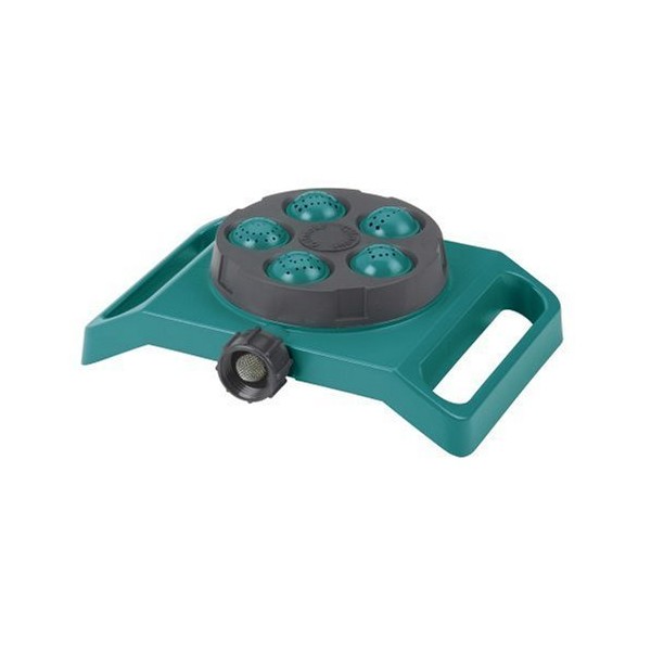 775 Features: -Operates at low or high water pressures. -Metal screen filter prevents clogging. -Impact resistant. -Carded. -Durable, rustproof polymer construction. Sprinkler Type: -Stationary. Base Type: -Sled. Sprinkler Location: -Above ground. Color: -Green. Base Material: -Plastic. Coverage Area: -35 Square Feet. Maximum Spray Distance: -35 Feet. Dimensions: -Five different watering patterns include circle up to 35' diameter, large square up to 30' x 30', small square up to 18' x 18', rectangle up to 20' x 40' and long strip up to 10' x 50'. Overall Height - Top to Bottom: -3". Overall Width - Side to Side: -8.75". Overall Depth - Front to Back: -9.5". Overall Product Weight: -0.5 lbs.