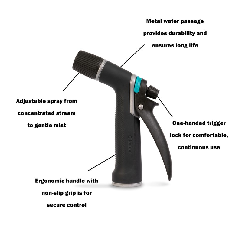Gilmour Medium Duty Garden Hose Nozzle with Adjustable Spray Pattern, Water Hose Nozzle for Watering Garden or Lawn, Black