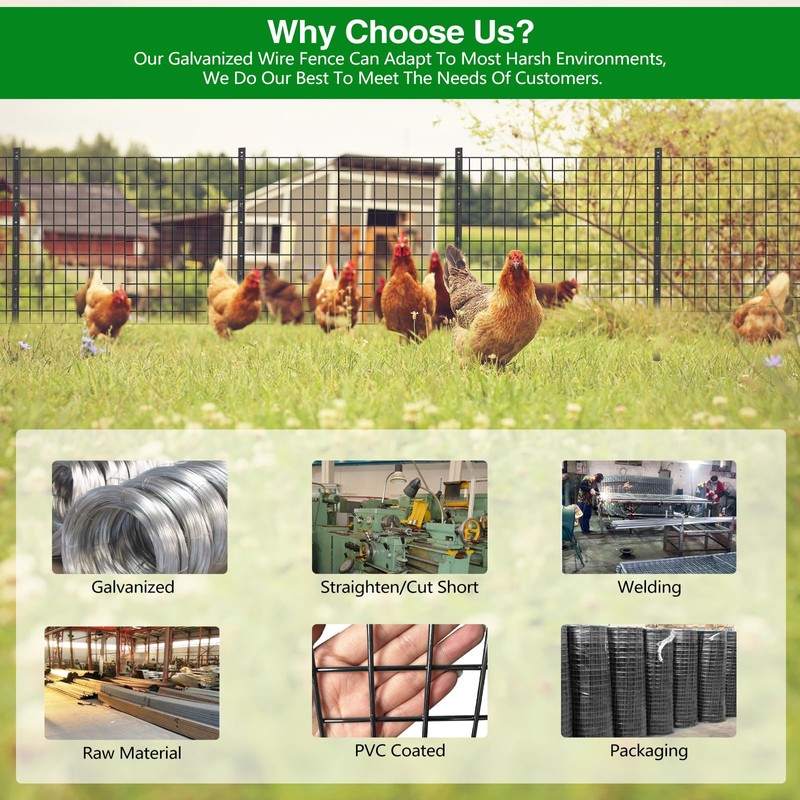 - π£π₯ππ ππ¨π π€π¨ππππ§π¬ πππ‘ππ: Welded mesh fence is made of heavy-duty galvanized wire and available in black vinyl coating, its smooth surface makes it easy to clean, protects the environment and does not harm animals to maximize rust resistance and longevity.