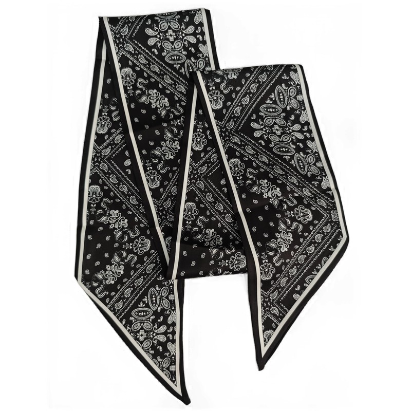 GIMIRO Satin Silk Scarf 148 x 13.5 cm Tie Double Layer Waistband for Blazer, Coat, Dress, 24# Pattern-B Black/White Floral