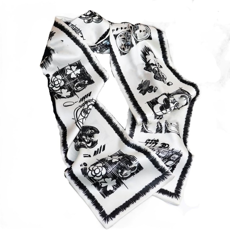 - Description This scarf is 150cm long and 16cm wide. This feature makes this scarf multifunctional.