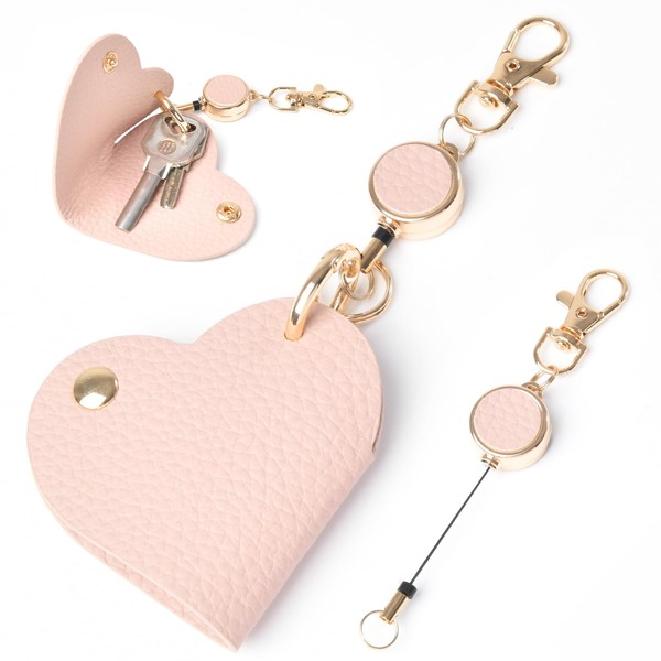 [Gineman] Love Scroll Strap Heart Shaped Detachable PU Leather Key Chain Elastic Hanging Keychain Clip on Scroll Buckle Loss Prevention, apricot pink
