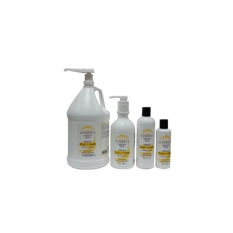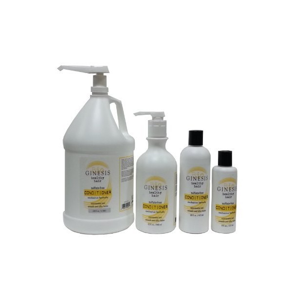 - All-natural, chemical-free, sulfate-free, non-toxic, and safe for the environment, Ginesis Conditioner is available in 16-ounce, 32-ounce, and 128-ounce (1-gallon) sizes.