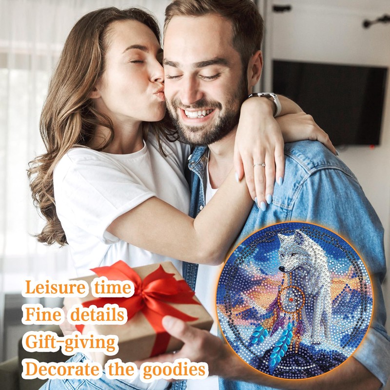 Ginfonr Diamond Painting Kits Hanging Pendant, Wolf Wall Plaque for Farmhouse, Dreamcatcher for Summer Decorations Diamond Art Suncatcher, Double Sided Mother's Day Gifts for Garden Window (20x20 cm)