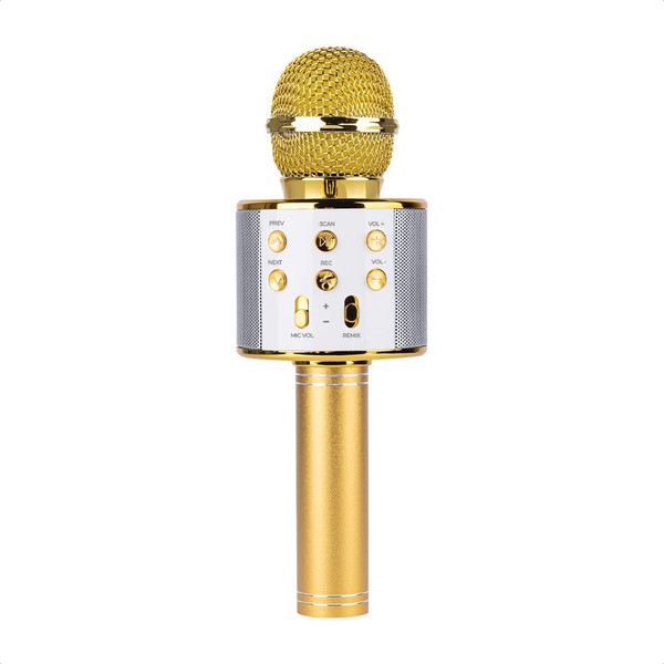 Ginga Micrófono Inalámbrico Karaoke con Bocina Bluetooth Incluida, Múltiples Funciones De Voz, Luces LED Color Dorado