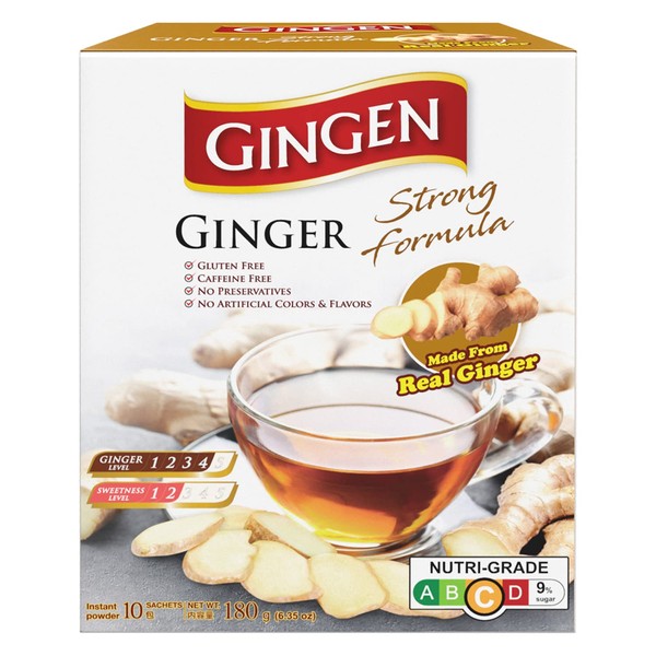 Gingen Instant Strong Formula Ginger Tea 18 g (Pack of 10 Sachets)
