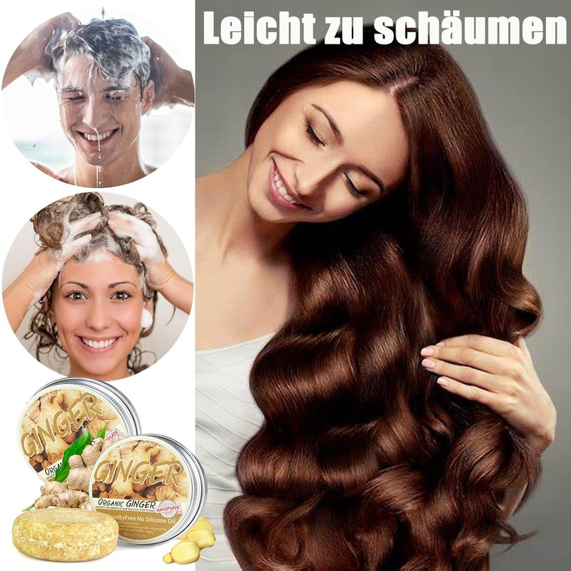 Ginger Hair Growth Shampoo Bar – Natural Organic Ginger Shampoo Soap for Hair Loss, Dandruff & Itchy Scalp, Anti-Hair Curling & Strengthening Treatment, Gentle Herbal Formula, Pack of 2 – Sulfate-Free & Eco-Friendly