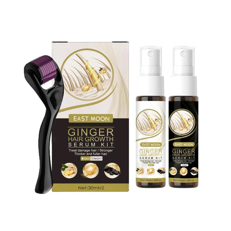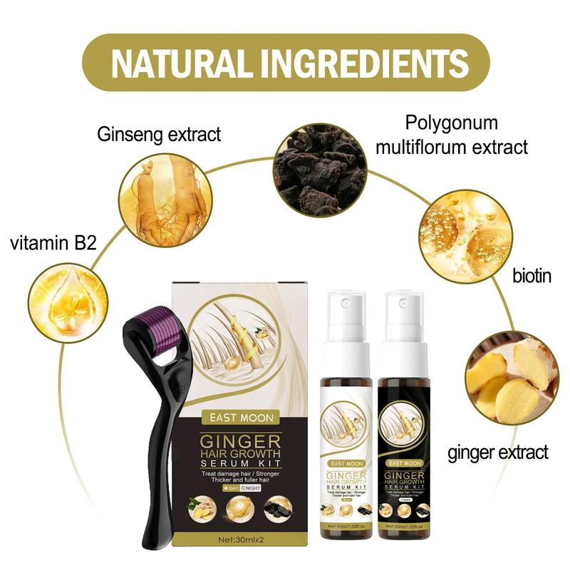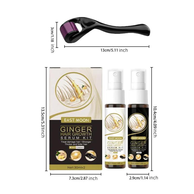 Ginger Hair Serum Kit, 1 Box 30ml*2 Ginger Serum with 1 Count Roller, Hair Care Product, Natural Ginger Extract Hair Serum, Scalp Massage Roller, Hair Care Product