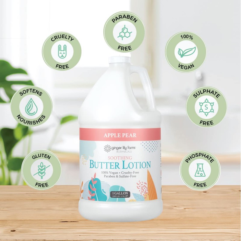 Ginger Lily Farms Ginger Lily Farms Botanicals Soothing Butter Lotion for Dry Skin, 100% Vegan & Cruelty-Free, Apple Pear Scent, 1 Gallon Refill (128 fl oz)
