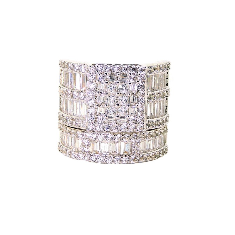 Ginger Lyne Collection Camilla Bridal Set for Women Square Cubic Zirconia Engagement Ring and Wedding Band Wide Width Statement Piece Baguette and Round Multi Cut Stones