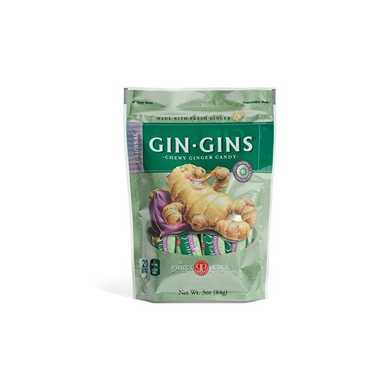 The ginger people gin gins original chewy ginger candy is made with fresh ginger and is a soothing travel treat. It’s good for all modes of travel and activity. We're delighted to treat you to our yummy range of all-natural candies made with an extra blast of fresh ginger. Pop one in your mouth and experience the warmth and goodness ginger brings. This is america's #1 selling ginger candy and it’s vegan gluten-free fat-free and made with non-gmo ingredients. This candy comes in a 3 oz. Pouch.country of origin : united statesis dairy free : yesis gluten free : yesis gmo free : yesis vegan : yesis wheat free : yesis yeast free : yessize : 3 ozpack of : 12selling unit : caseingredients : cane sugar;ginger;10%;tapioca starchkeywords : aid;fat;free;gluten;gmo;non;stomach;sweet;vegan
