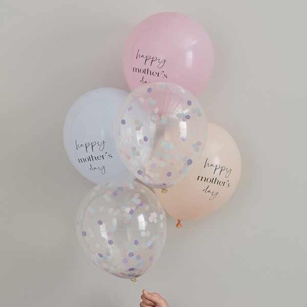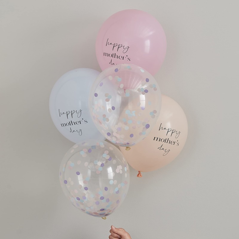 Ginger Ray Best Mum Ever Confetti Latex Party Balloons 5 Pack, Multi